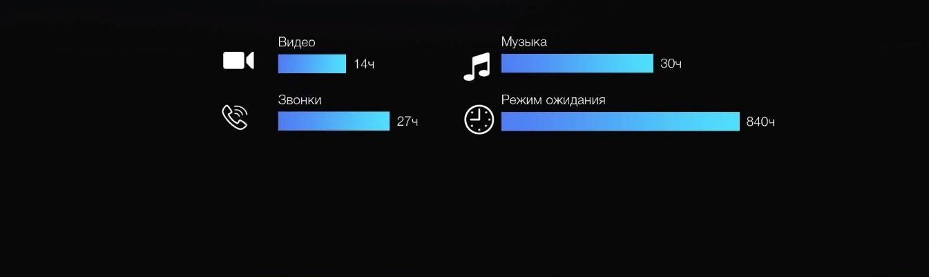 - Время работы в режиме видео просмотра: до 14 ч;