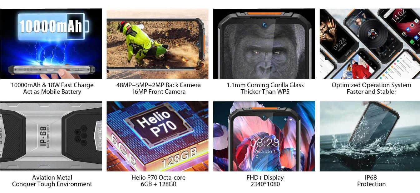 Oukitel WP6 полностью русифицирован, готов к использованию в GSM, 3G и 4G сетях на территории РФ.
