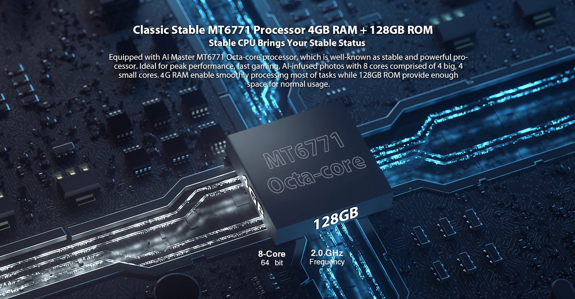 - Процессор MT6771 с максимальной частотой ядер до 2ГГц;