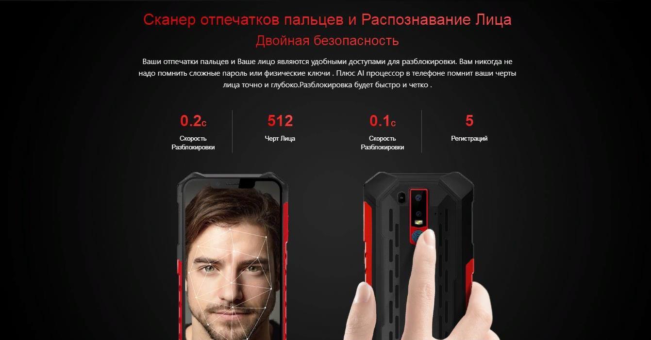 - Водоустойчивый сканер отпечатка пальца, позволяющий разблокировать телефон за 0,1 секунды даже при мокром пальце.